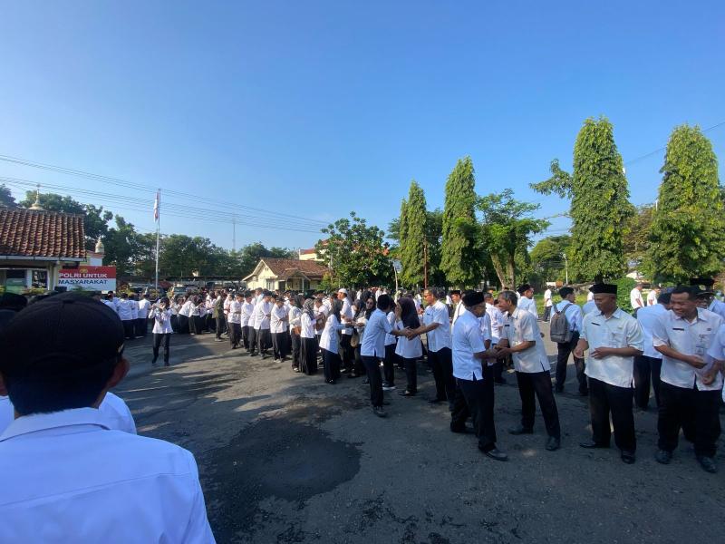 Rabu, 9 April 2025 dalam rangka mempererat tali silaturahmi antar Perangkat Desa dan Kecamatan Muntilan setiap tahun pada Bulan Syawal dilaksanakan Halal bi Halal yang diikuti oleh Perangkat Desa se-Kecamatan Muntilan. Kegiatan ini dilaksanakan di Halaman Kecamatan Muntilan yang diawali dengan sambutan oleh Camat Muntilan Bapak Drs. Titok Lestianto, M.M yang menyampaikan terimakasih atas kehadiran semua perangkat desa dan mengucapkan Minal Aidzin wal Faidzin mohon maaf lahir dan batin, Bapak Camat juga menyampaikan motivasi agar tahun ini kita semua dapat bekerja lebih baik untuk mengabdi kepada masyarakat. Kemudian setelah sambutan dari Camat Muntilan, dilanjutkan dengan salam-salaman antar perangkat desa. Setelah selesai dilanjutkan dengan menikmati hidangan bersama yang telah disediakan.